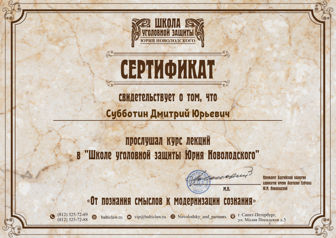 Меня зовут Дмитрий Субботин. Я – адвокат-криминалист и горжусь своей работой на протяжении уже многих лет.